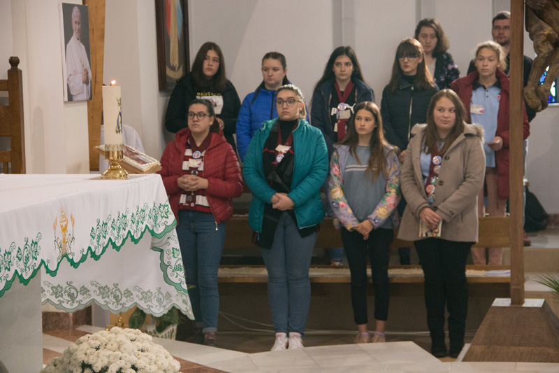 Sâmbătă am celebrat un moment de adoratie, prin care ne-am exprimat multumirea si iubirea fata de Domnul nostru. Liturghia de Duminica a fost celebrata impreuna cu familiile de prin imprejurimi, animata de noi, tinerii cu cantece acompaniate de tineri muzicieni talentati din Actiunea Catolica, atmosfera fiind una pe masura intalnirii cu Dumnezeu, dominata de zambete, elan si recunstinta. Multumim Parintelui Felix, doamnei presedinte Cristina Mare, doamnei coordonator Daniela Maria Mititelu, consiliului diecezan care au organizat acest curs de formare, bineînțeles gazdelor care ne-au oferit conditii prielnice pentru a ne desfasura activitățile, si mai ales, multumim lui Dumnezeu!